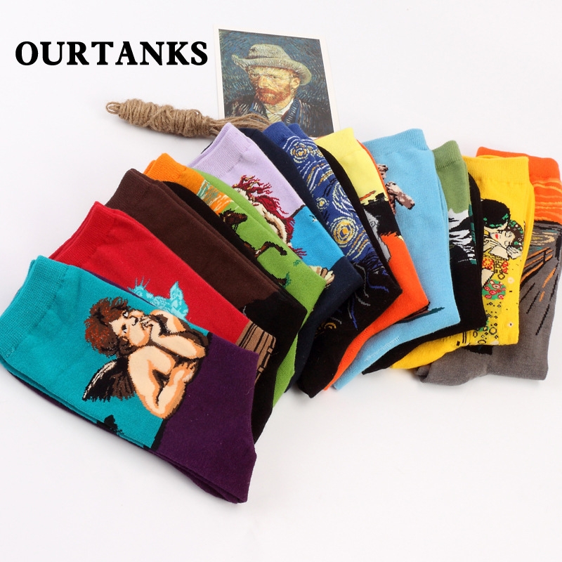 casual hat print cotton socks unisex design mini order 5 pairs mix colors