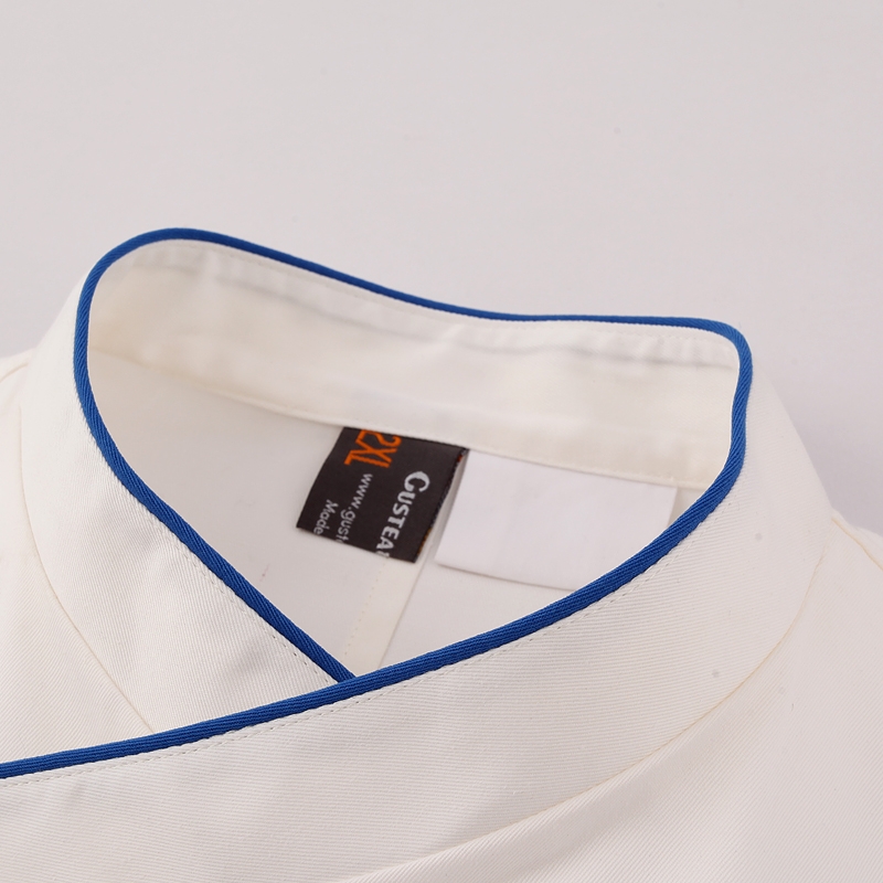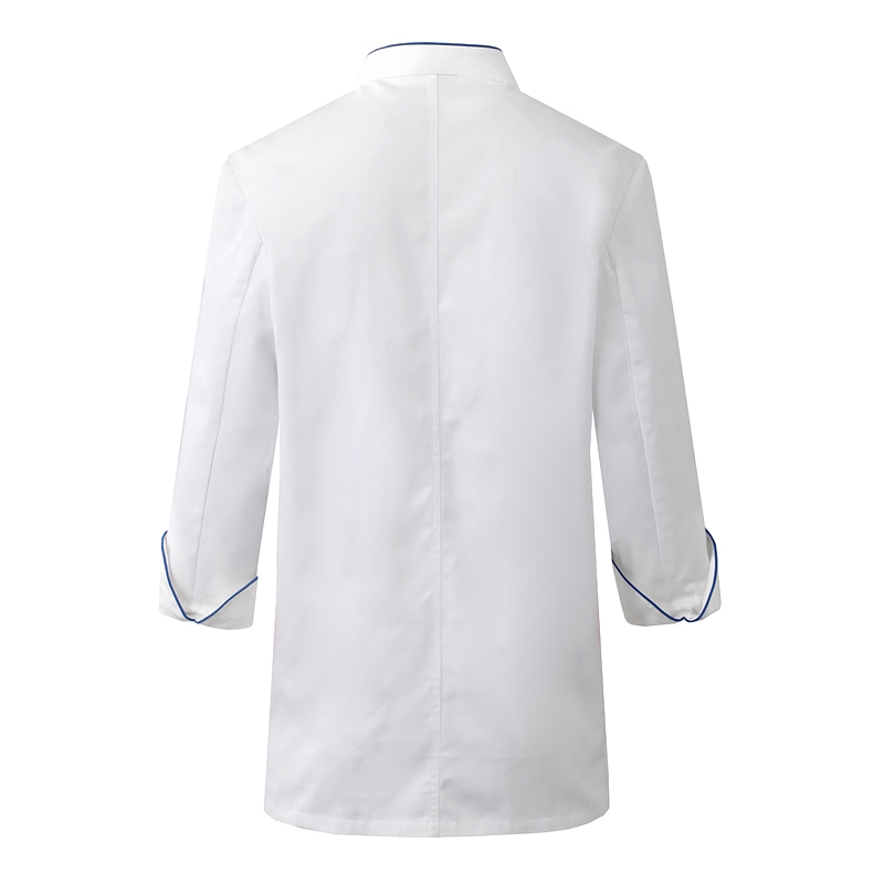 fashion double-breasted chef coat chef jacket uniform with airhole - Size (CN) : M, Color : white coat (blue hem)