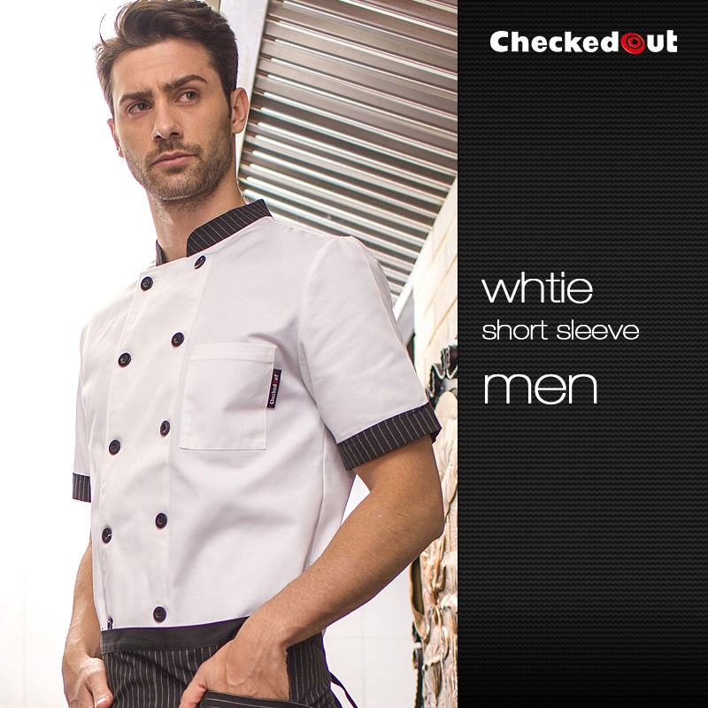 Exclusive short sleeve male chef uniforms coat white colors,7 size (Asian size) men chef