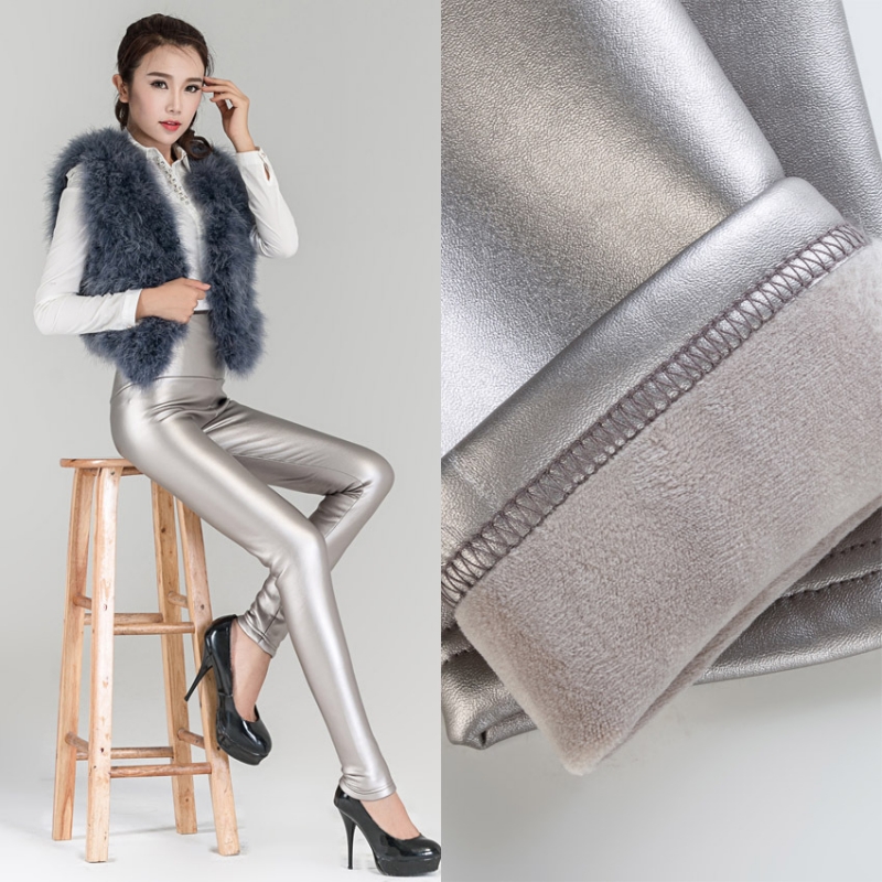 winter fashion fleece lining Artificial leather pant jeans legging high quality fabric,