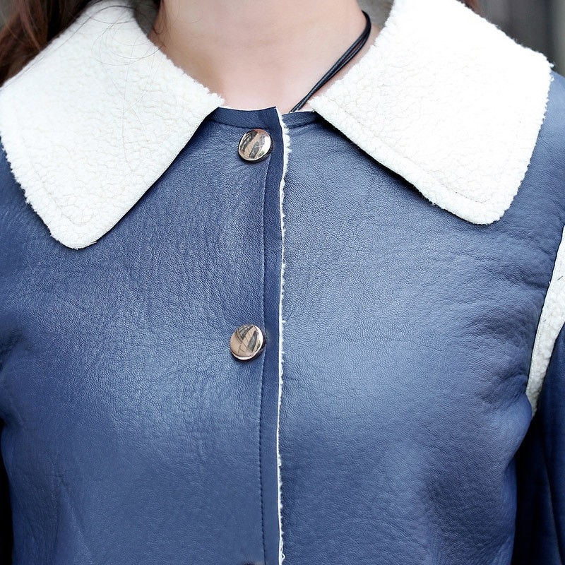 PU leather bounding with lamb fur women's windbreak trench coat, Europe America style, Street fashion & warm,2014 autumn new design