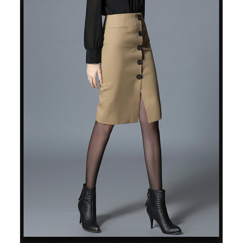 Europe design woolen fabric button lady skirt office work business skirt formal design