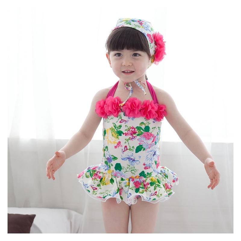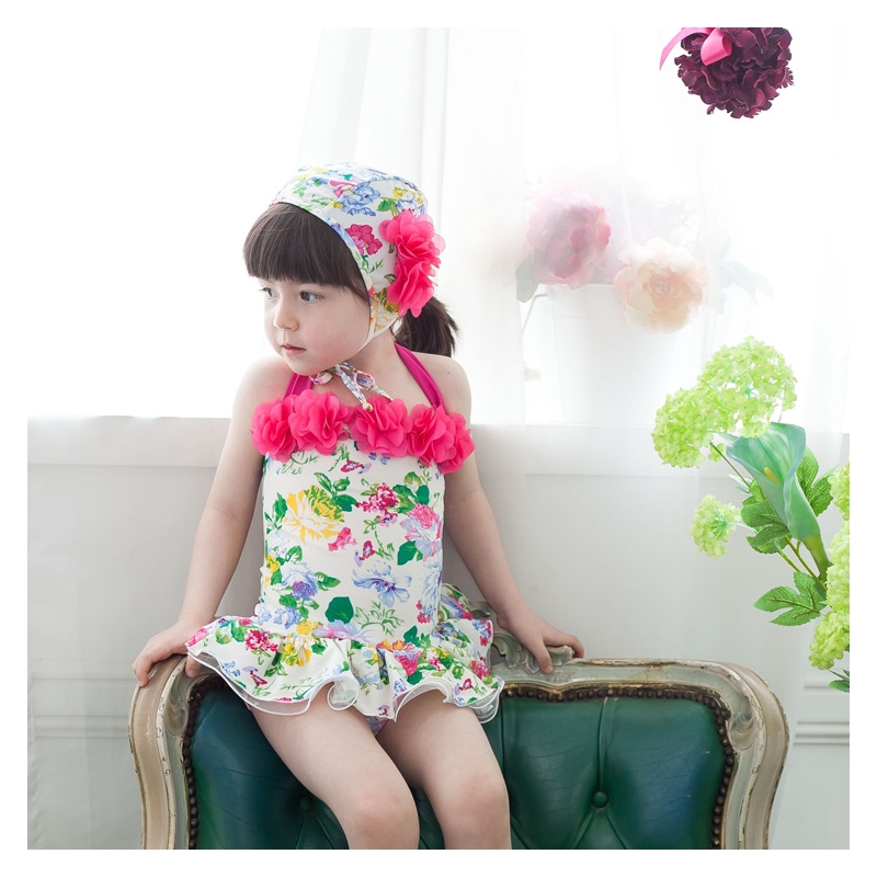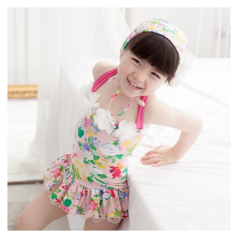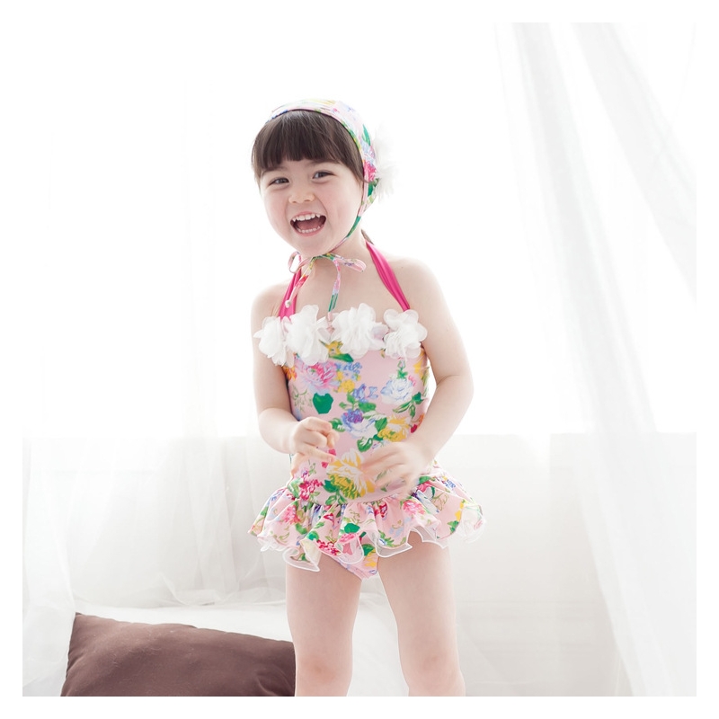 Asian Design lovely floral little girl swimwear kid swimwear swimming or spring spa water game wear