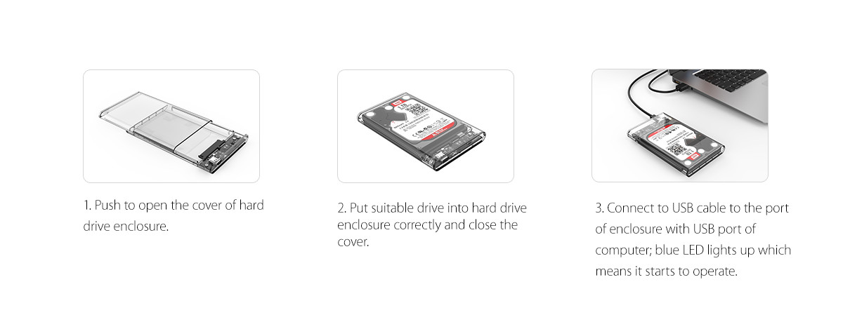 2.5 inch SATA USB 3.0 portable hard drive enblosure 50cm data cable easy installation Transparent box