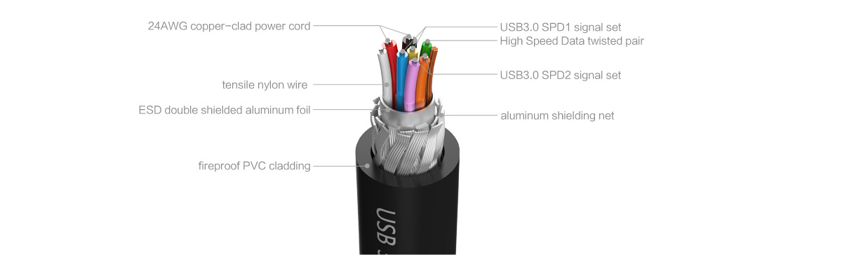 InterfaceSuperSpeed USB3.0 Length5Ft / 1.5M MaterialPVC CertificateCE / FCC / RoHS Compatible DevicesUSB Keyboard, Mouse, U-disk, Card Reader, etc.