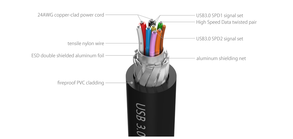 InterfaceSuperSpeed USB3.0 Length5Ft / 1.5M MaterialPVC CertificateCE / FCC / RoHS Compatible DevicesUSB Keyboard, Mouse, U-disk, Card Reader, etc.