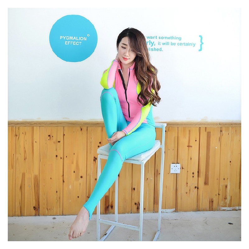 elastic zipper patchwork women wetsuit swimwear