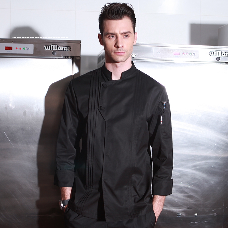 2016 fashion black color invisible button chef jacket workswear uniform,chef uniform jacket