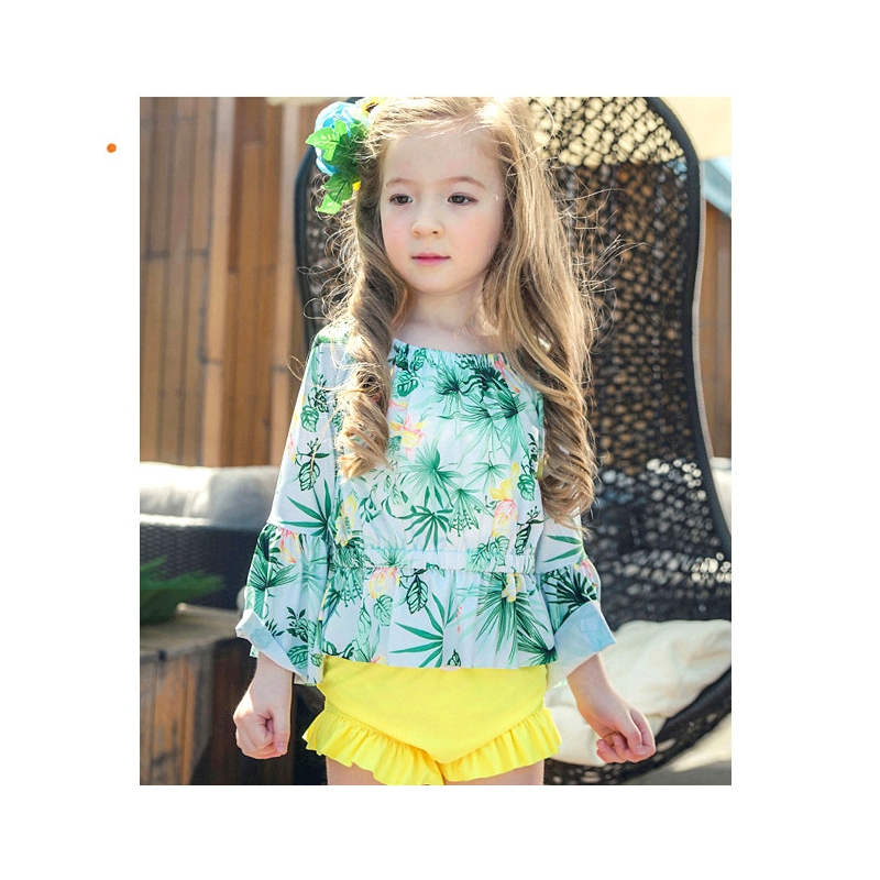 2018 new design plant printing cute girl child teen swimwear