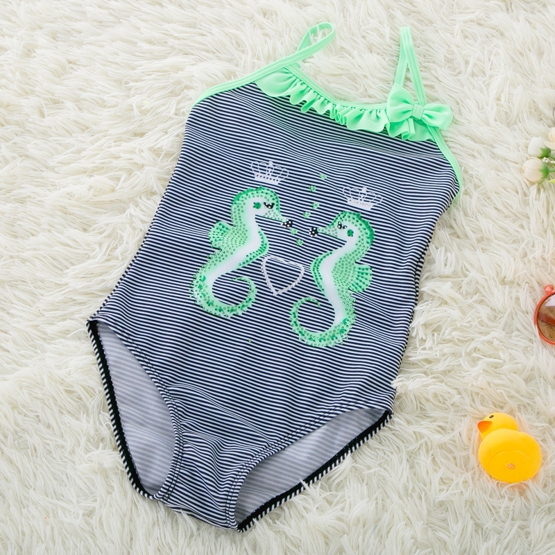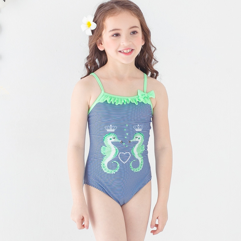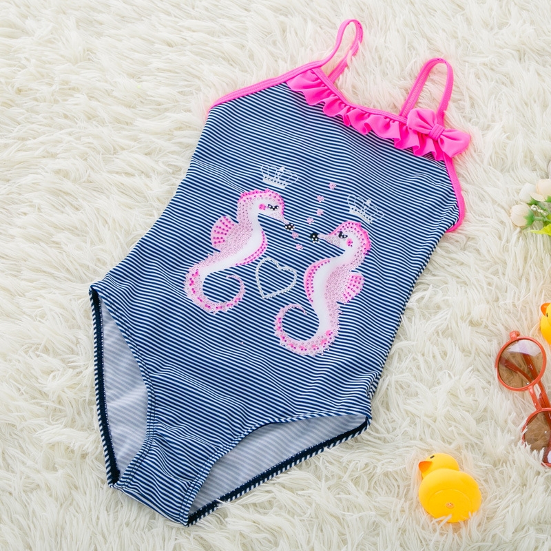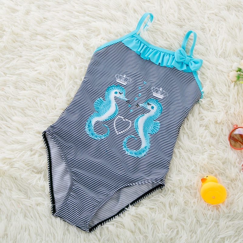 2018 new Hippocampus printing little girl swimwear swimsuit