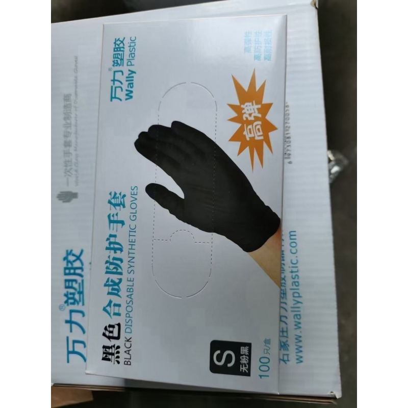 Wally plastic powder free disposable synthetic gloves black color ready stock OTG in stock China