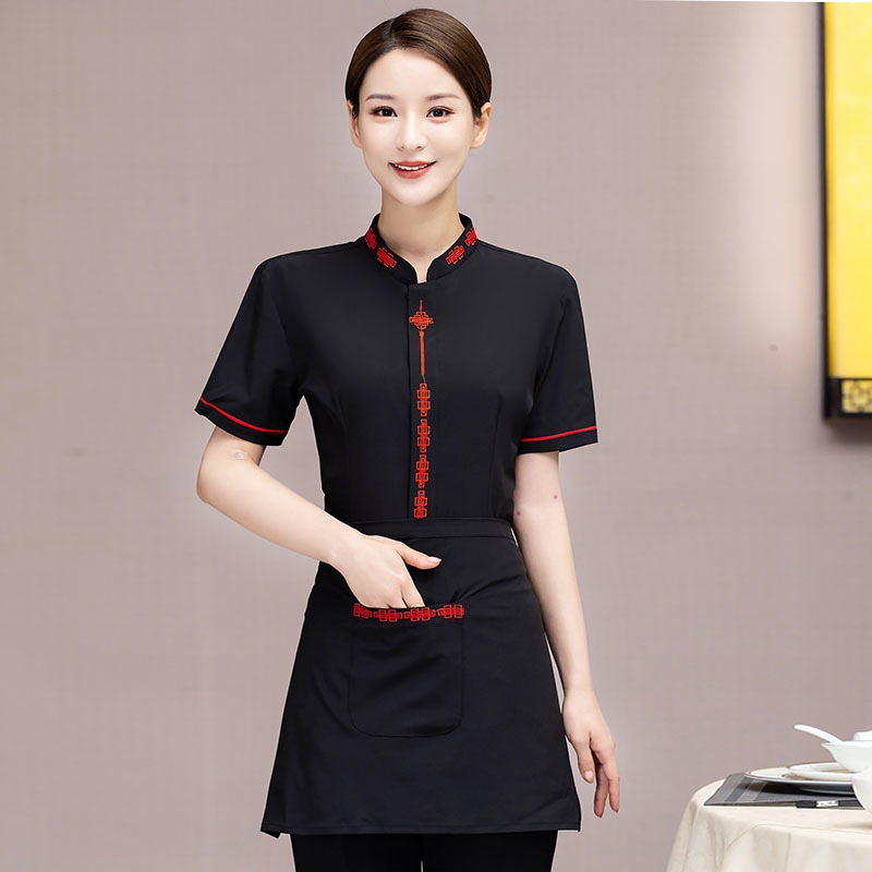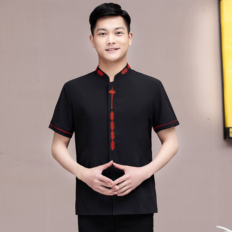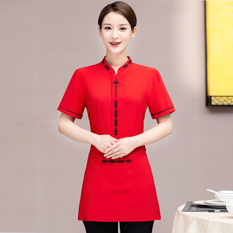 2022 Chinese red summer half sleeve chinese style waiter waitress blouse uniform cheap