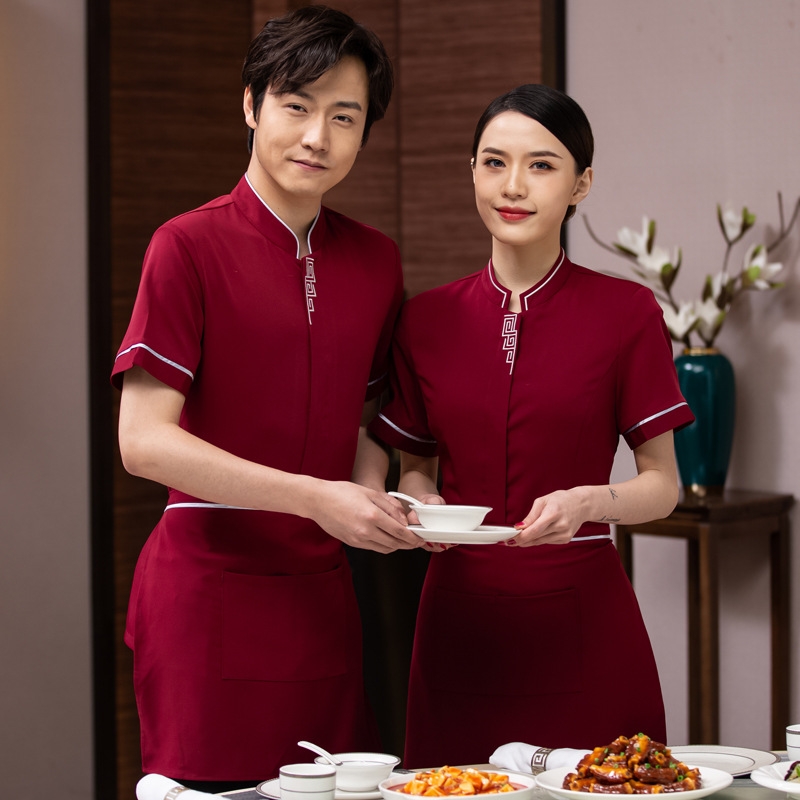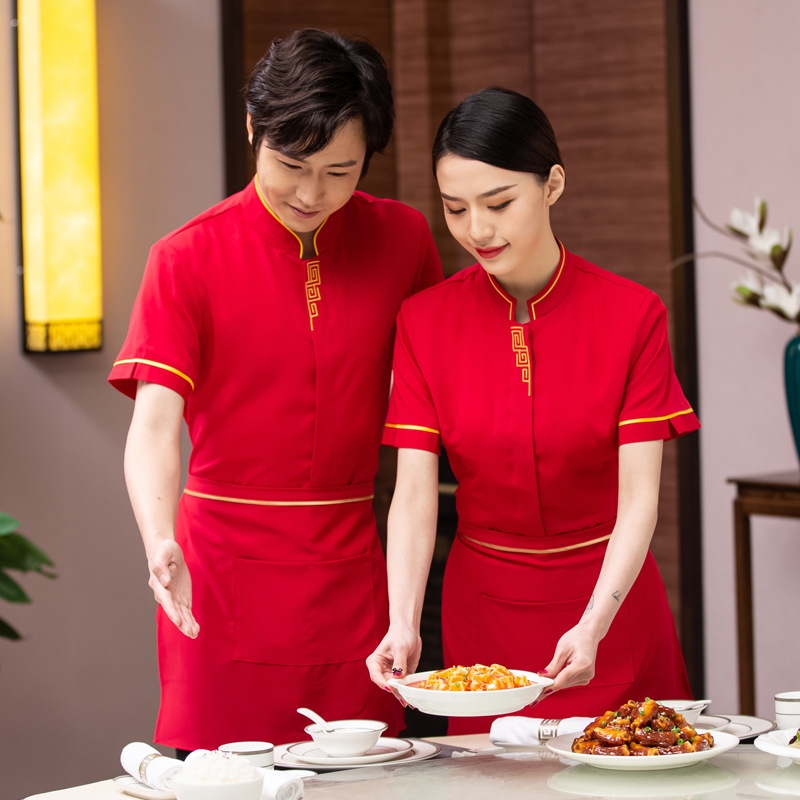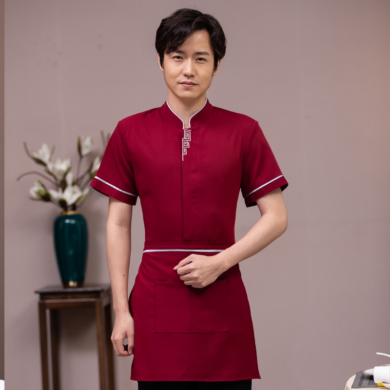 2022 Chinese tranditional style tea house staff half sleeve waitress waiter blouse uniform
