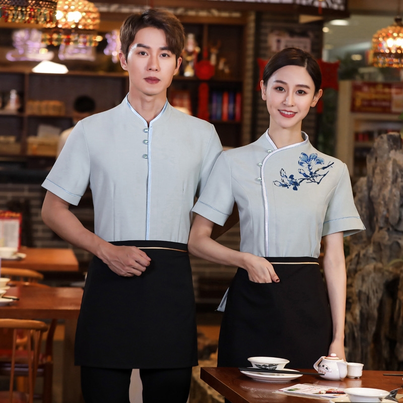 2022 new design bow waitress waiter tea house jacket hotel pub floral printing