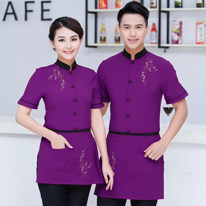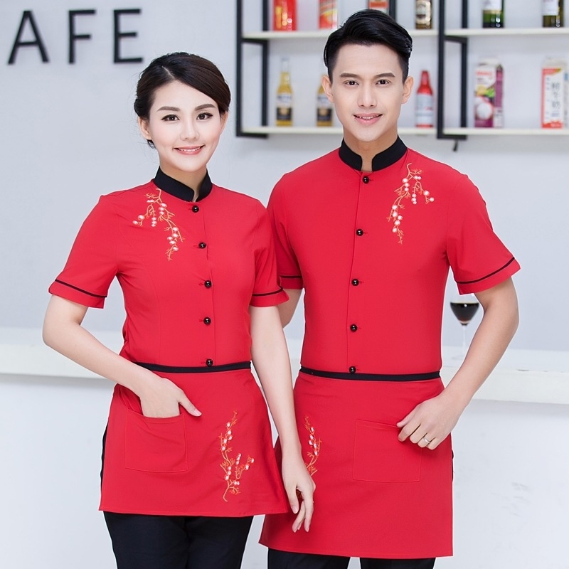 2022 buy waitress waiter from China tea house Chinese food restarant staff uiform with Apron