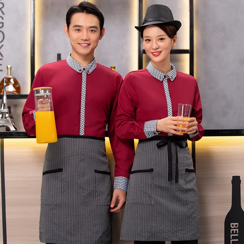 2022 spring fall long sleeve shirt uniform tea house black/wine color waitress waiter jacket