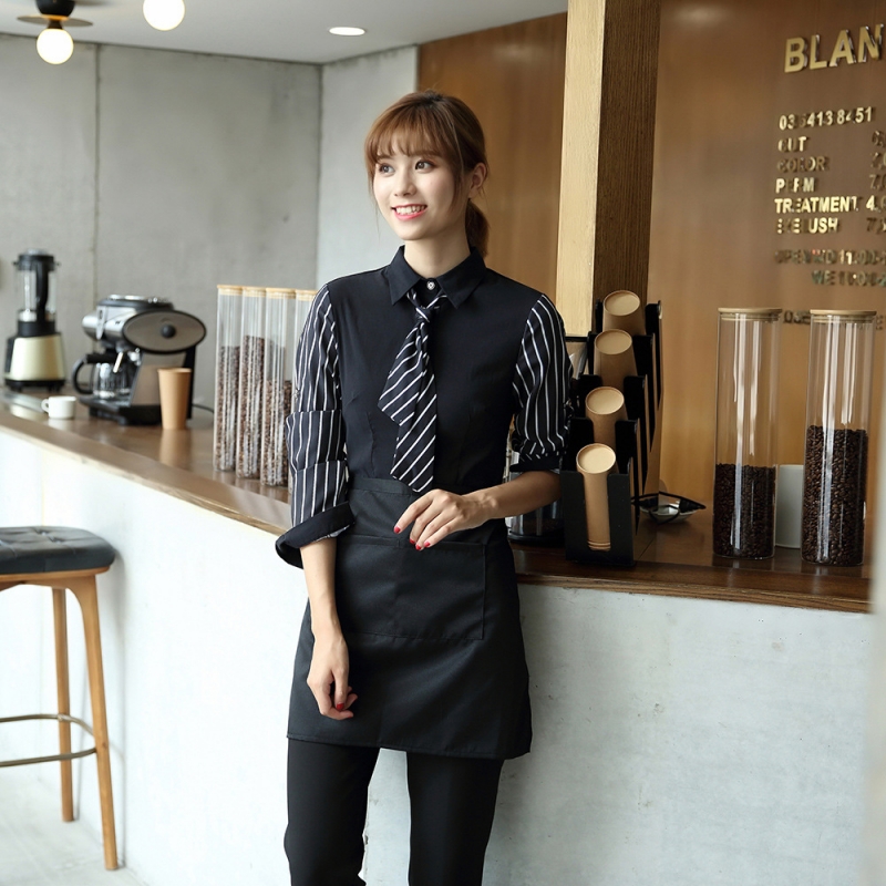 coffee shop long sleeve waiter shirt jacket uniform the price for 1x shirt + 1x apron(gift)