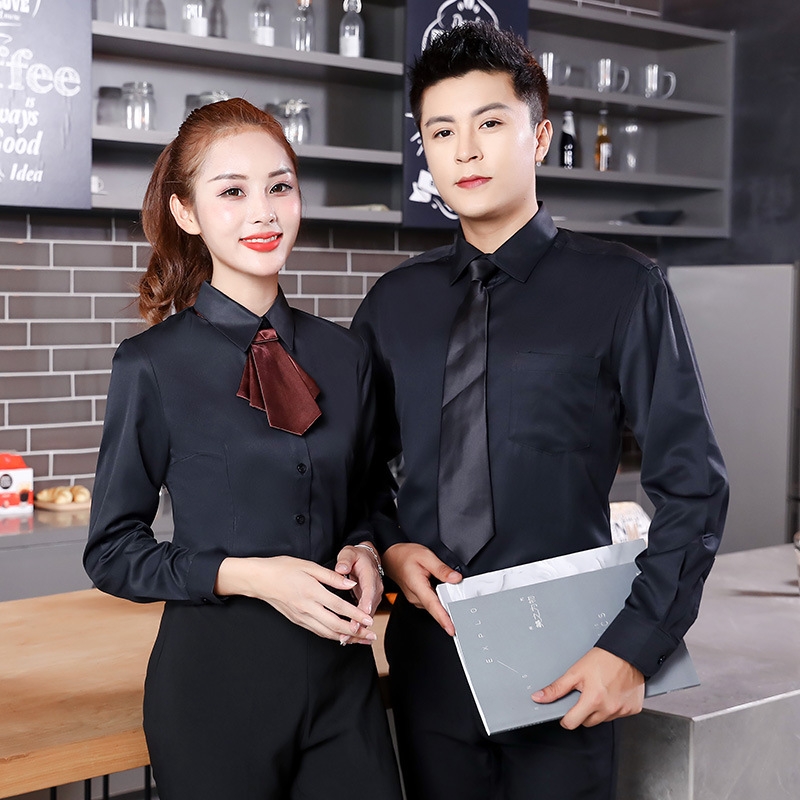 short sleeve summer black collar waiter staff uniforms shirts restaurant clerk waiter store staff
