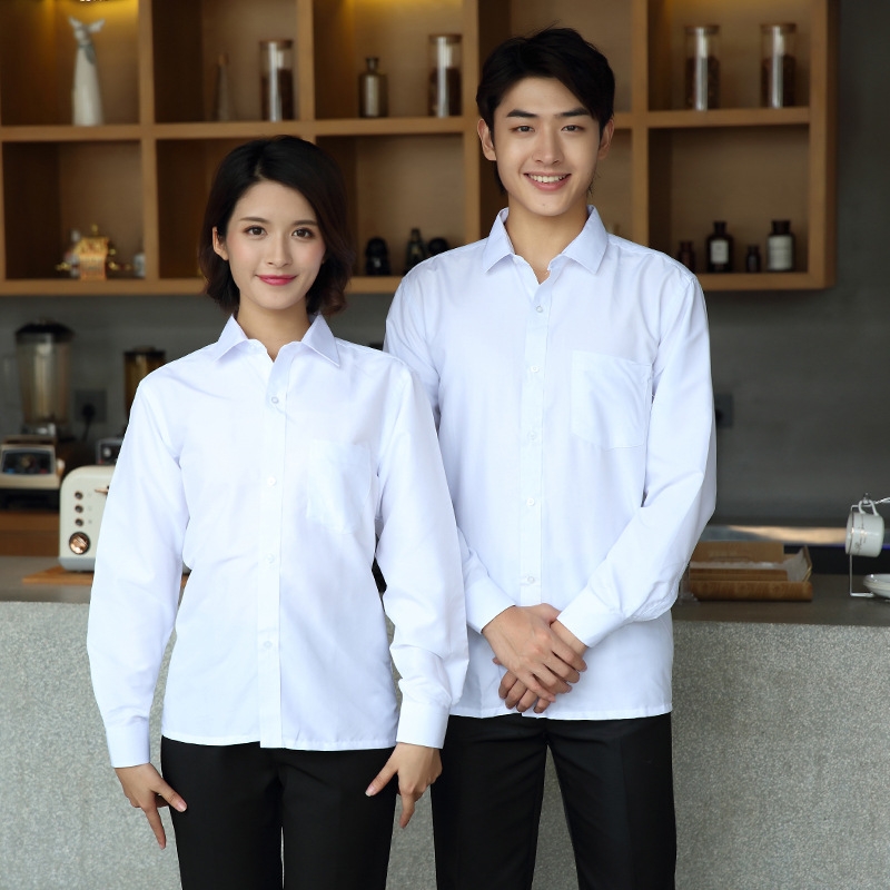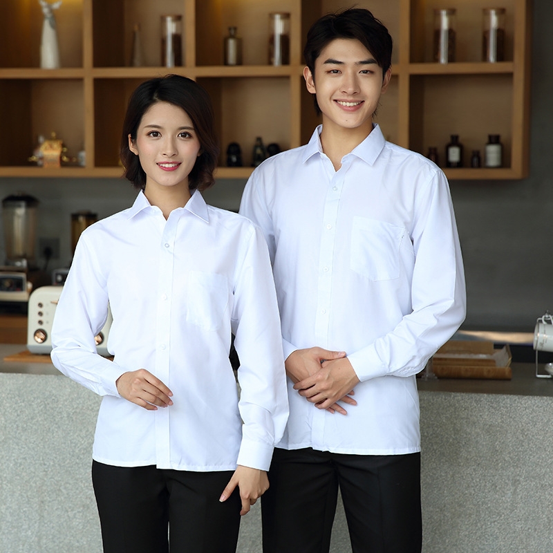 2022 fashion high quality fabric office work shirt staff uniform waiter waitress shirt