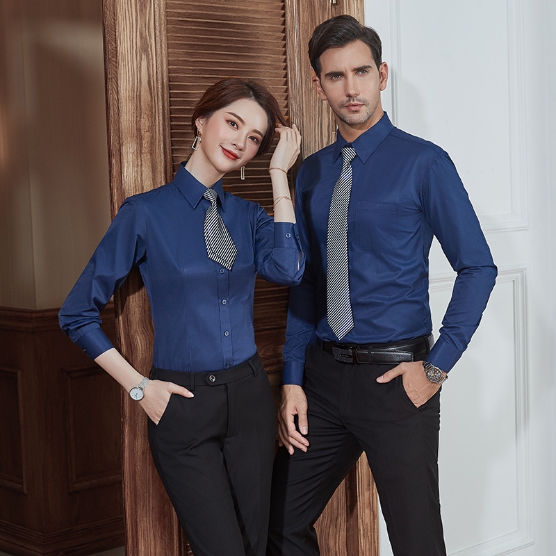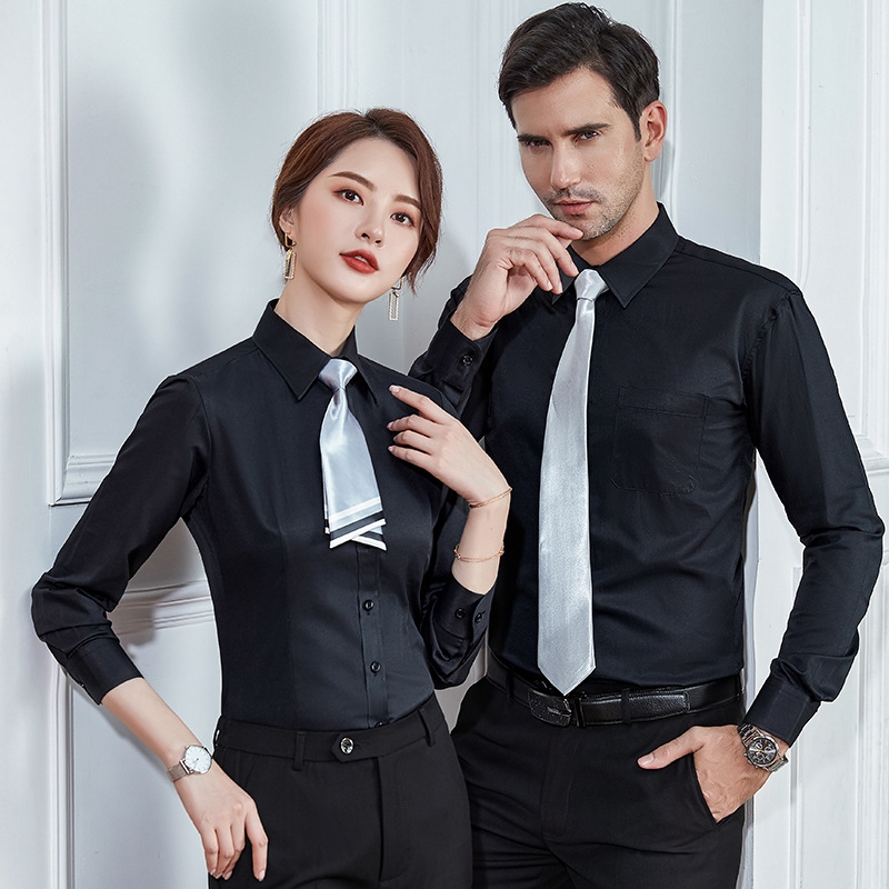 2022 high quality good fabric solid color office women men work shirt staff uniform waiter waitress shirt