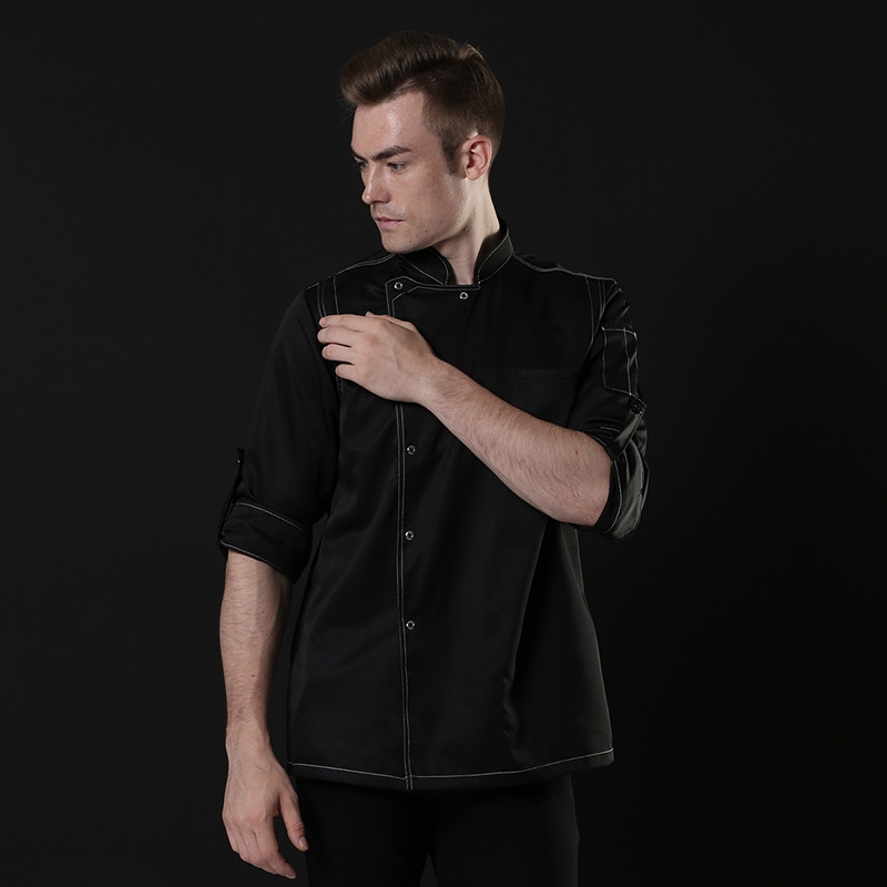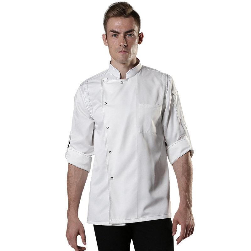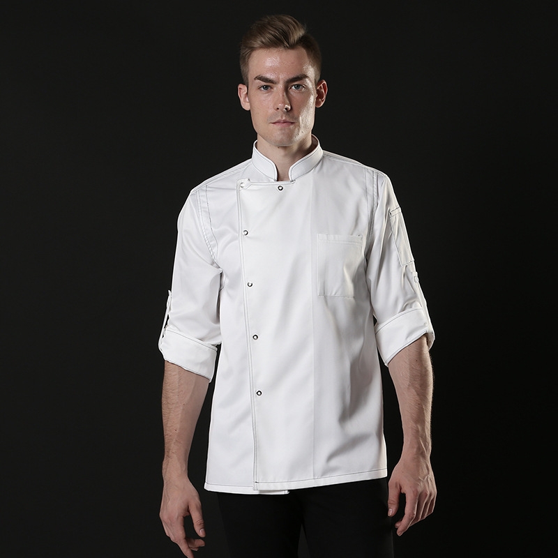 contrast hem overlap invisible button chef uniform coat chef coat chef uniforms restaurant bread cake shop