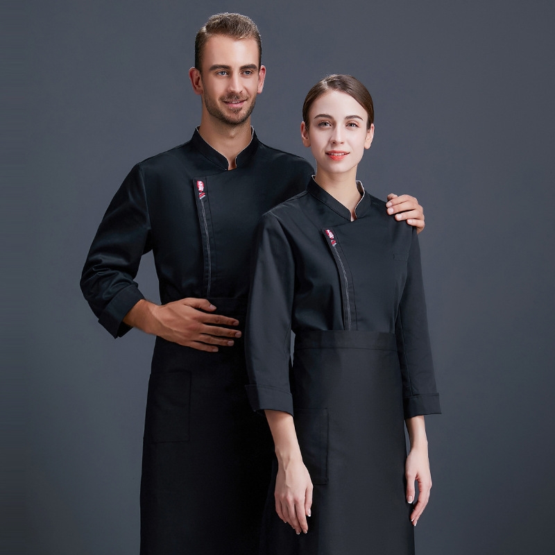 contrast hem overlap invisible button chef uniform coat chef coat chef uniforms restaurant bread cake shop