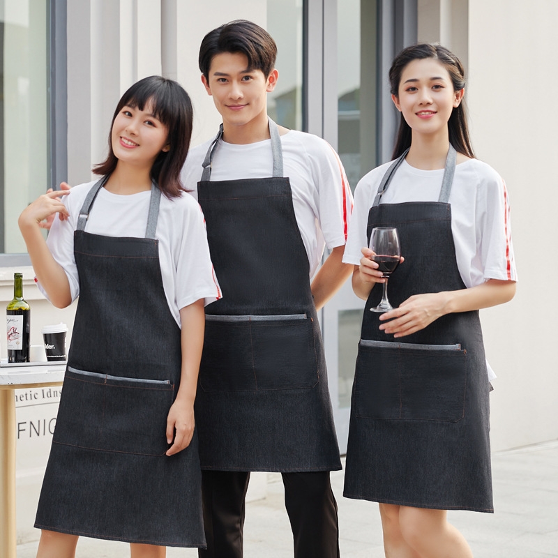 2022 simple large pocket breathable fabric restaurant apron chef halter apron working apron
