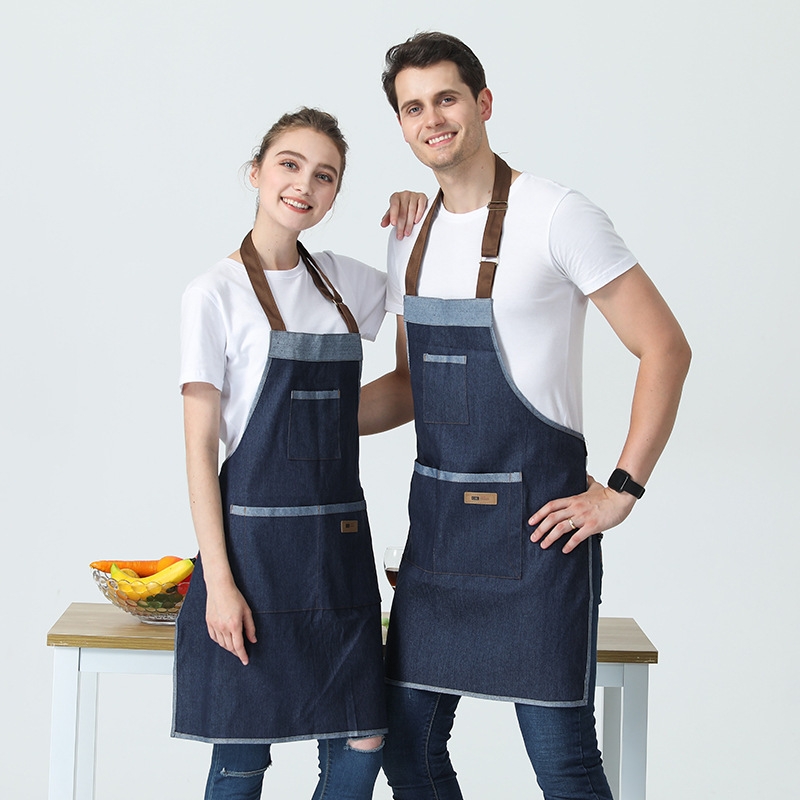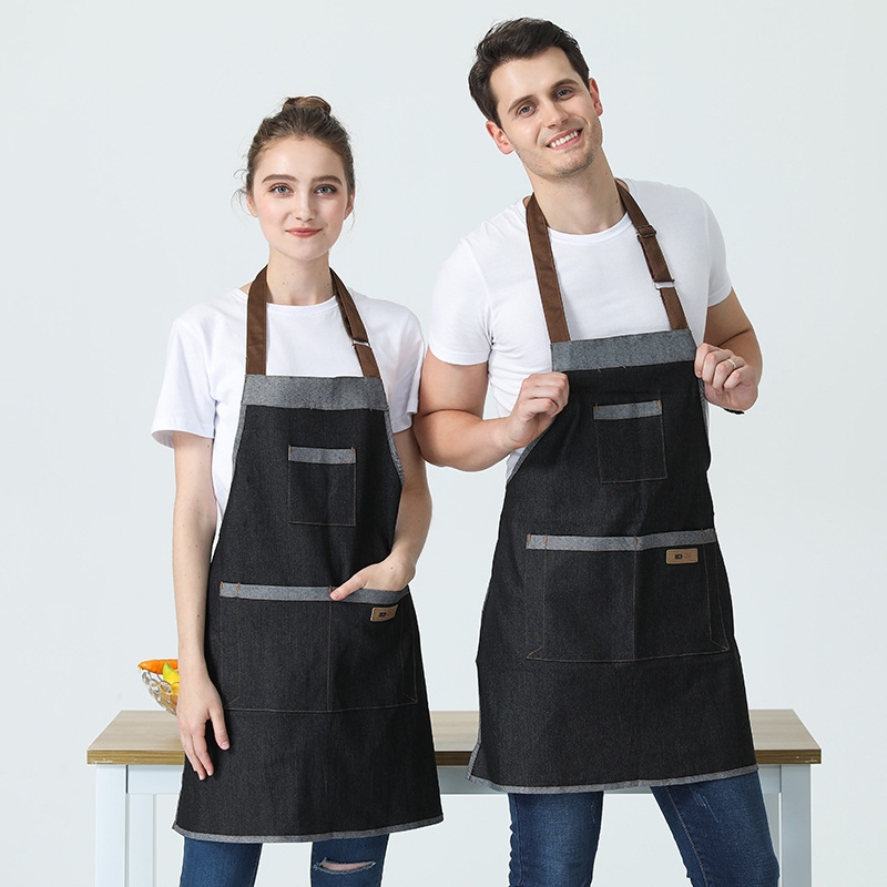 2022 cheap black/blue denim halter apron fruit store apron long apron household apron