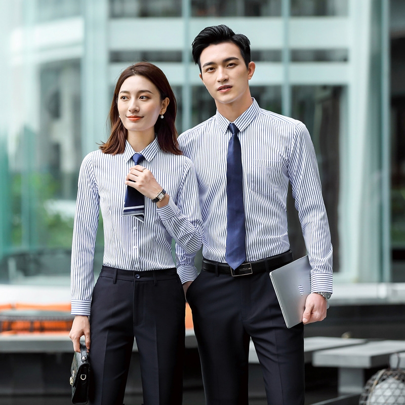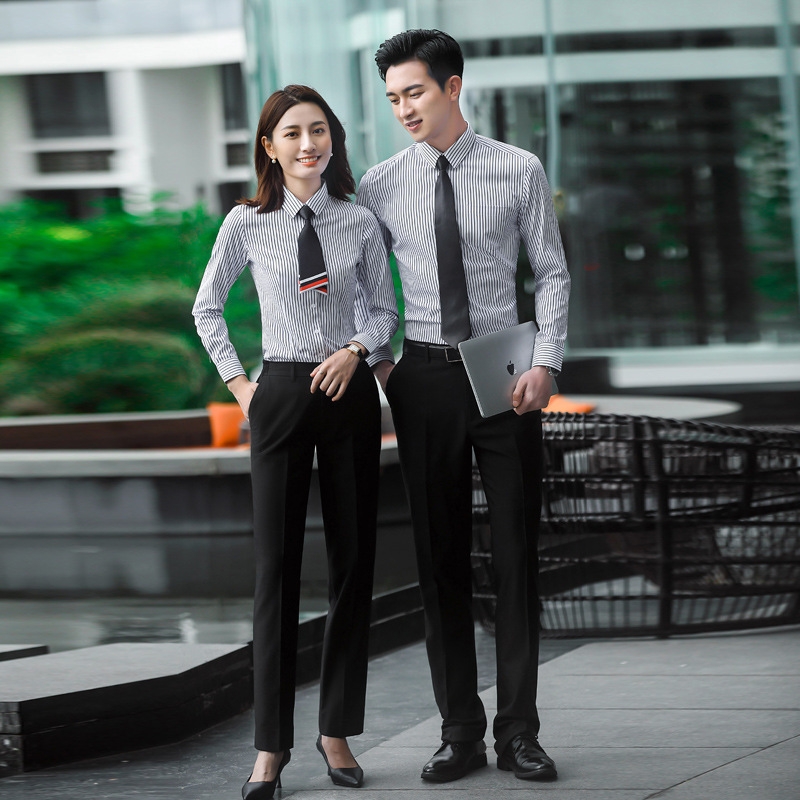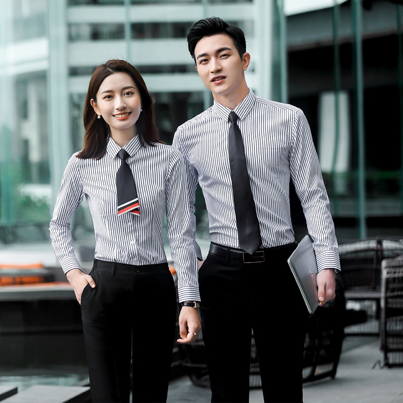 2022 Korea long sleeve cafe pub stripes printing office work shirt uniform women men shirt