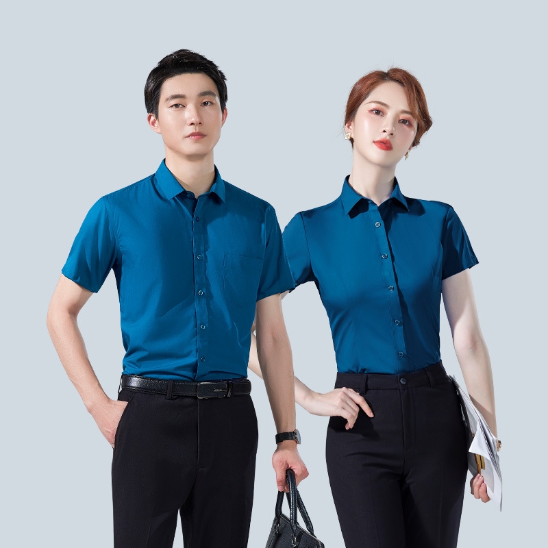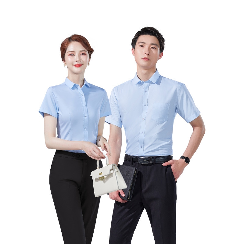 2022 short sleeve solid color office formal work shirt uniform for women men business shirt