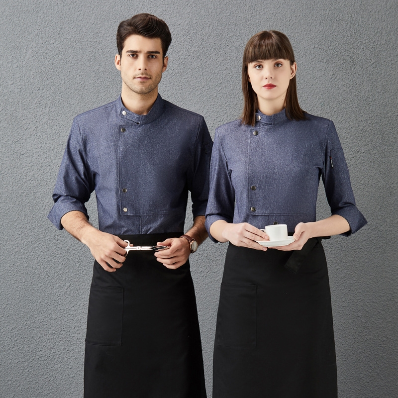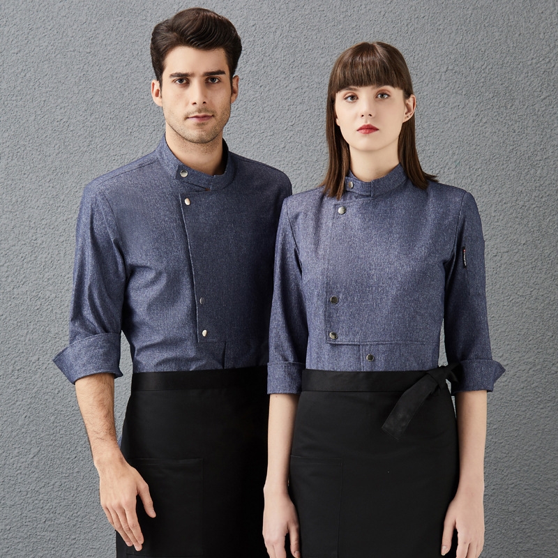 fashion unisex design denim fabric short/long sleeve chef blouse jacket uniform
