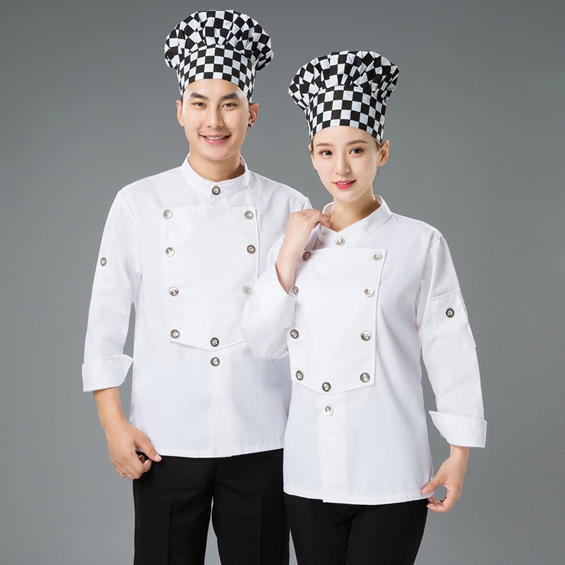 contrast hem overlap invisible button chef uniform coat chef coat chef uniforms restaurant bread cake shop