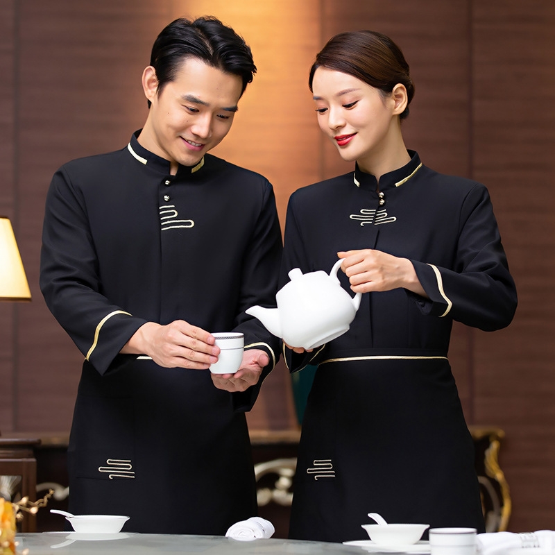 2022 Asian design long sleeve tea house waitress waiter blouse jacket cafe wait staf uniform