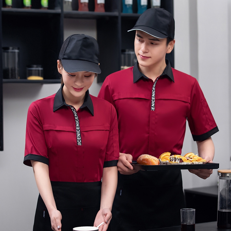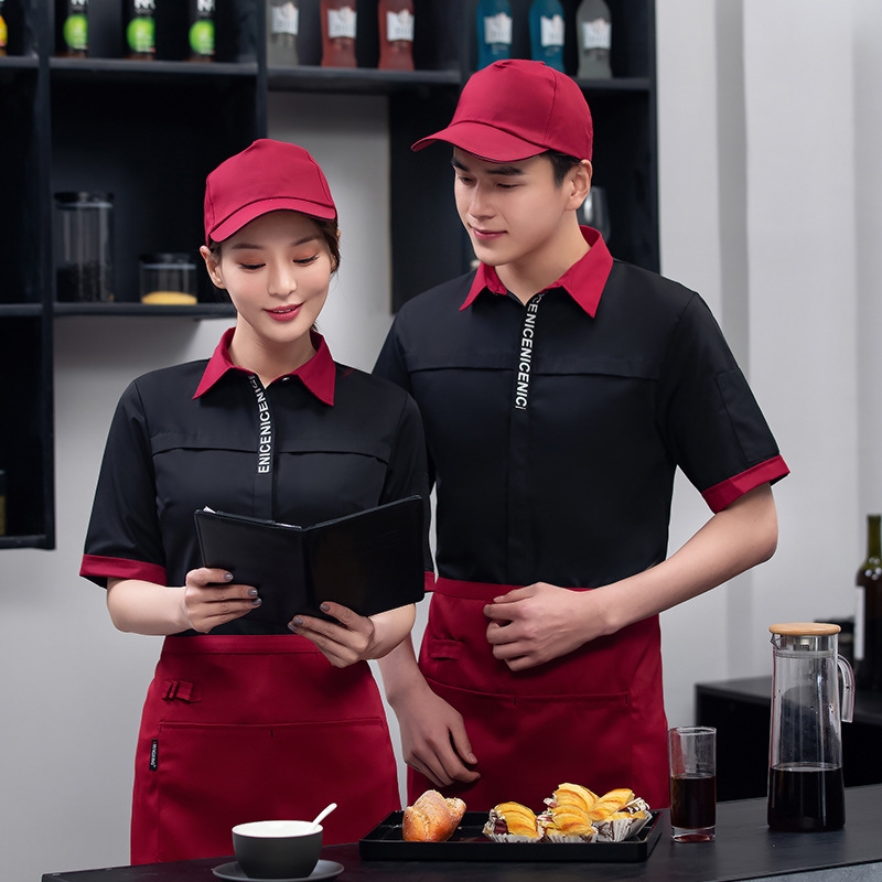 brand fast food clerk waiter waitress shirt uniform occasions : hotel,restaurant,tea house,bar,KTV,KFC,breadstore,suppermarket both have waiter and waitress designs