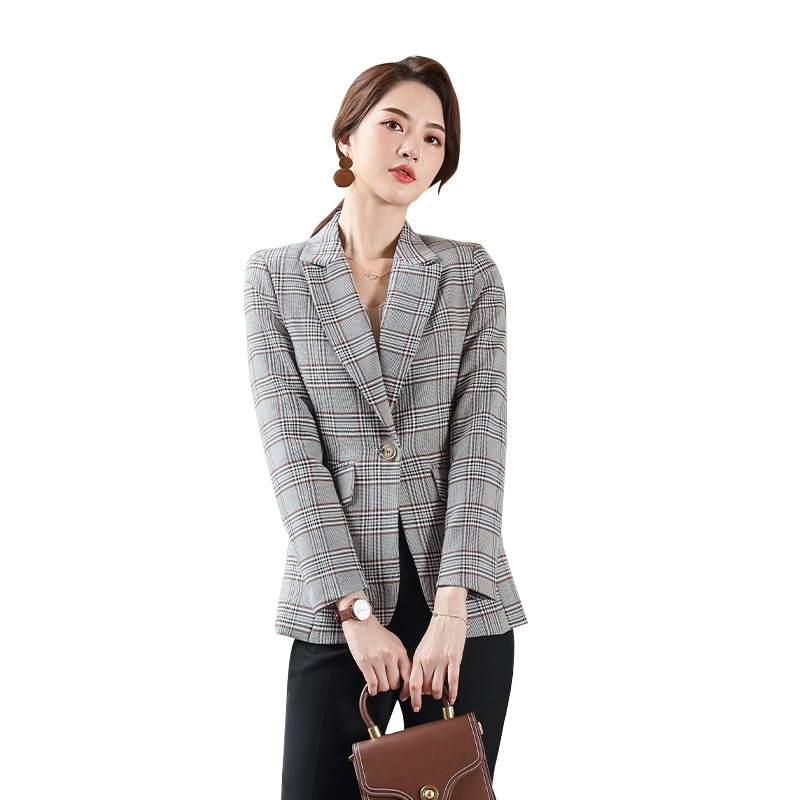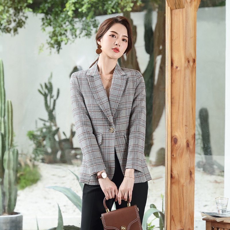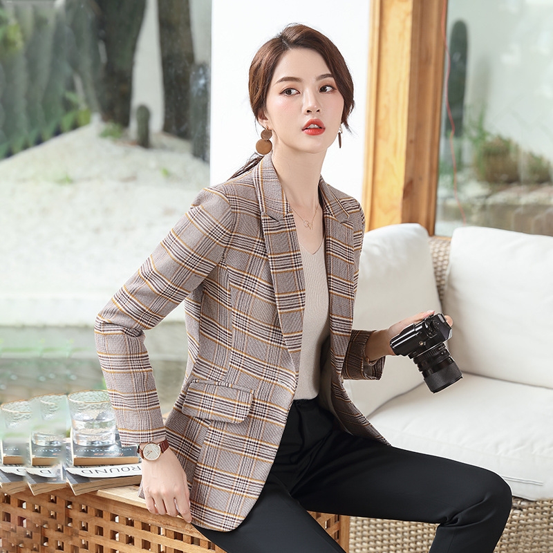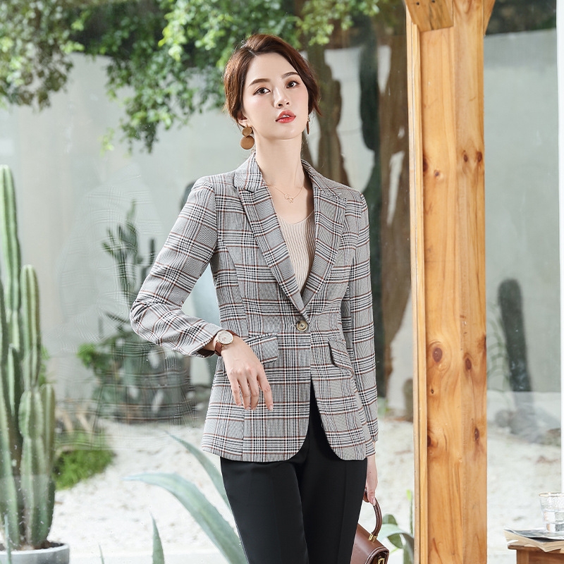 2022 one buttons business office lady grid printing women work suit female pant suit work wear