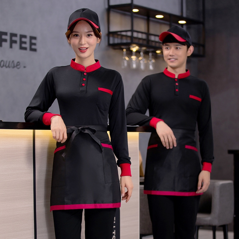 2022 high quality long sleeve pub waiter waitress tshirt uniform factory supplier