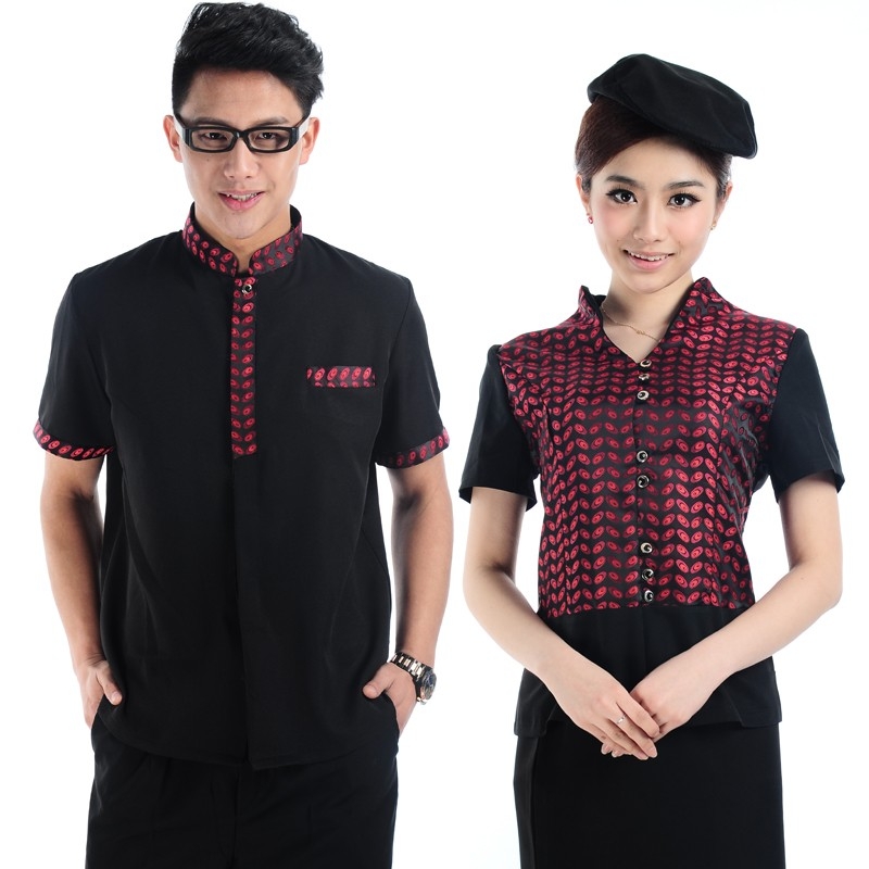 summer short sleeve grid fast food waiter shirts cafe lounge uniforms occasions : hotel,restaurant,tea house,bar,KTV,KFC,breadstore,suppermarket both have waiter and waitress designs colors : blakc or pink colors design