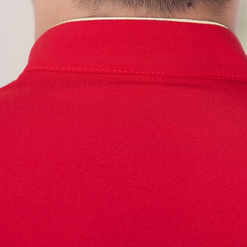 summer short sleeve ,high quality fabric,professional design red button solid color waiter uniform shirts ,first 10 orders free apron wholesale will be much cheaper,
