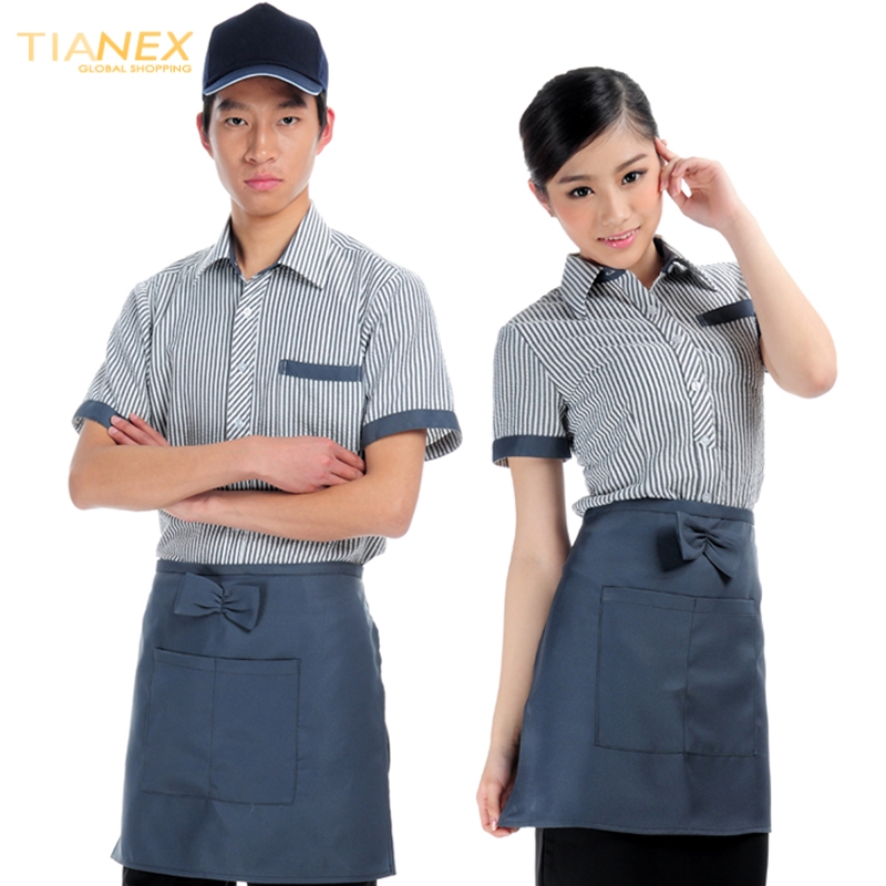 high quality Professional design waiter waitress uniform shirt + apron set wholesale will be much cheaper