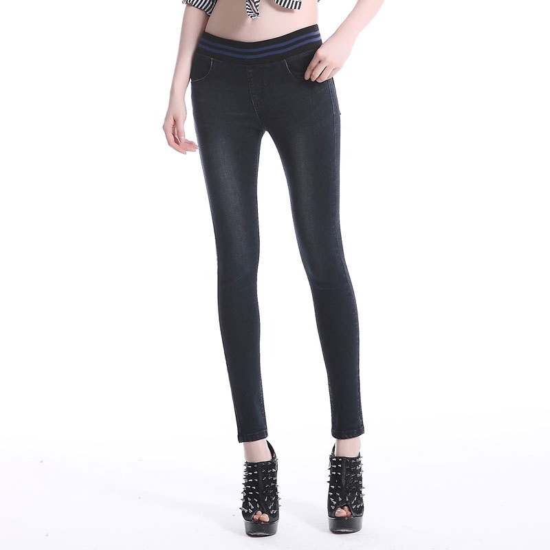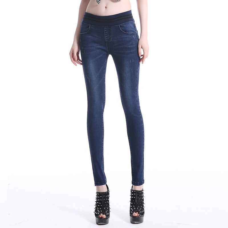 elastic sexy waist with pocket autumn winters women lady's jeans pant trousers