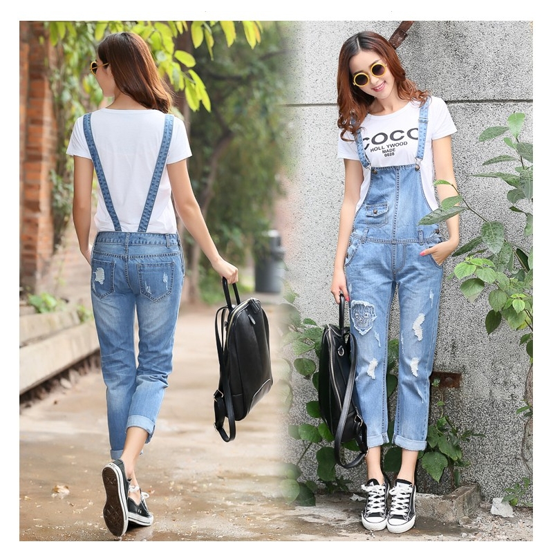 fashion personatlity skull holed denim young women's rompers jumpsuits pant