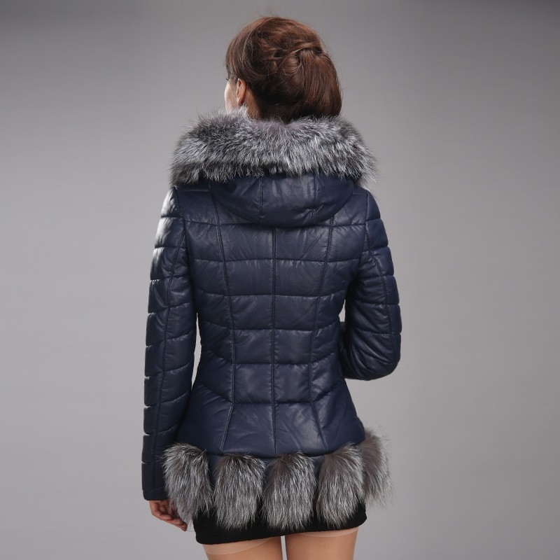 new design winter short style eider duck down big fox collar navy blue women's jacket coat