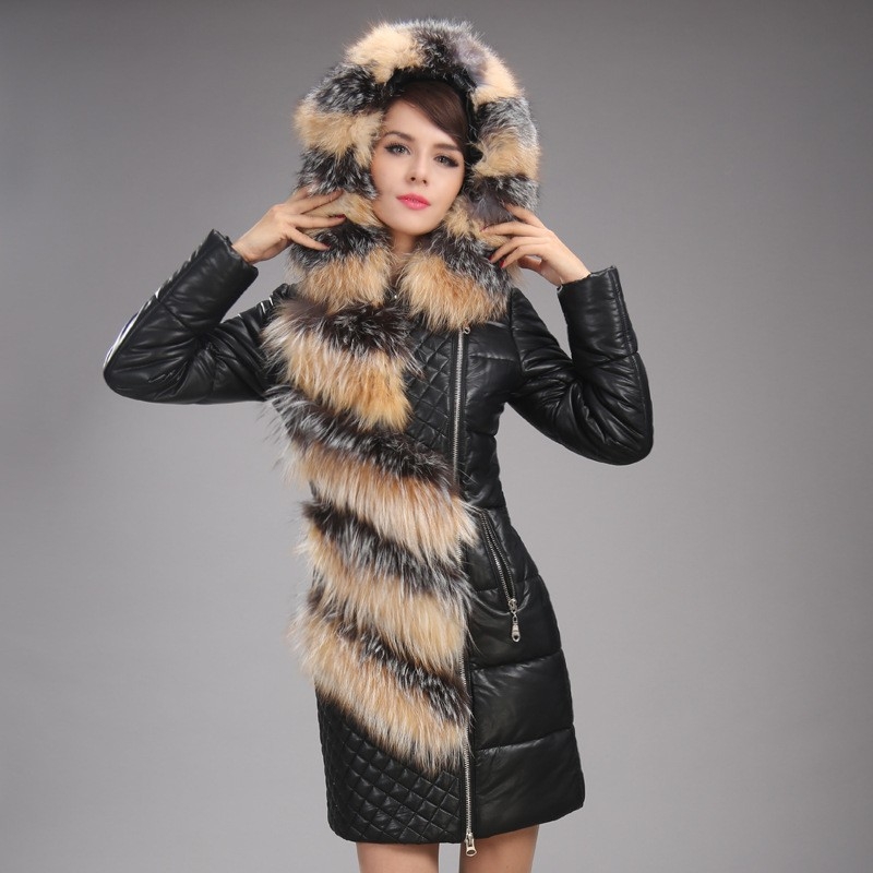 2014 winter Europe new fashion deluxe long design down coat fox collar woman down coat