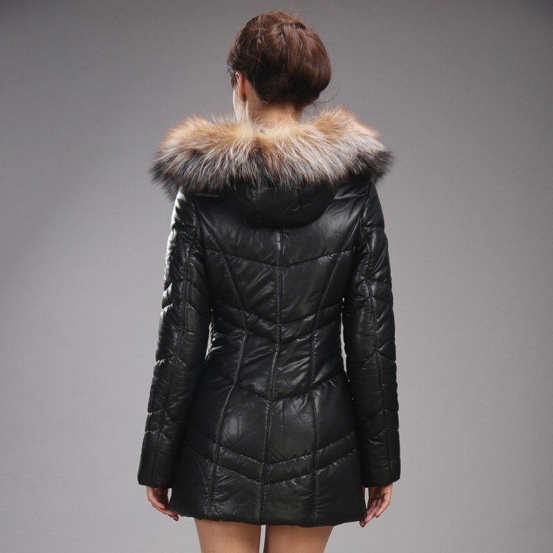 winter fox collar white duck down upgraded PU leather thicken women coat