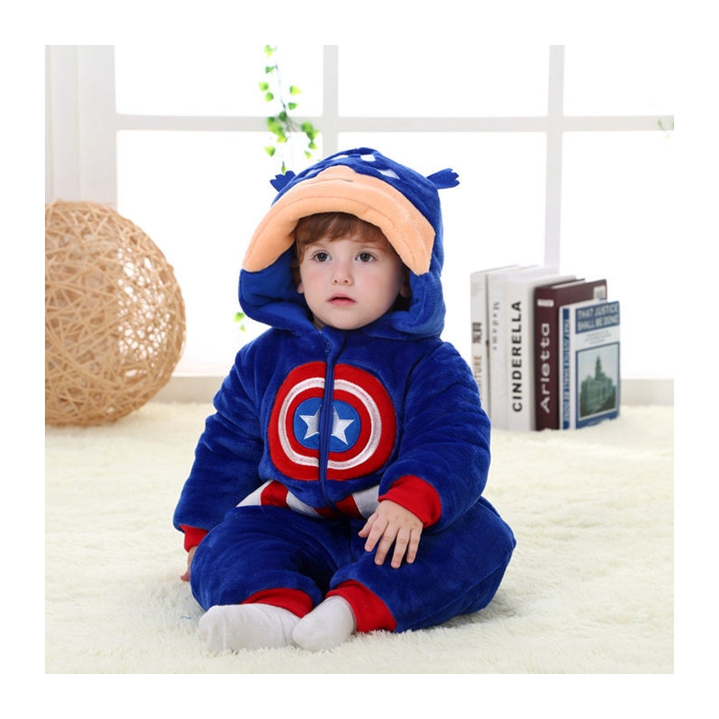 Flannel fabric high quality Captain America cartoon child rompers whosale