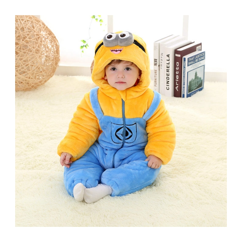 high quality flannel fabric winter lovely minions cartoon child kids rompers wholesale 5 pieces/lot