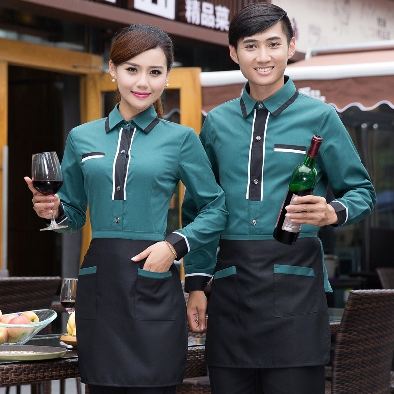 autumn long sleeve ,high quality fabric,professional design waiter/waitress uniform coat discount ,first 10 orders free apron wholesale & retail,