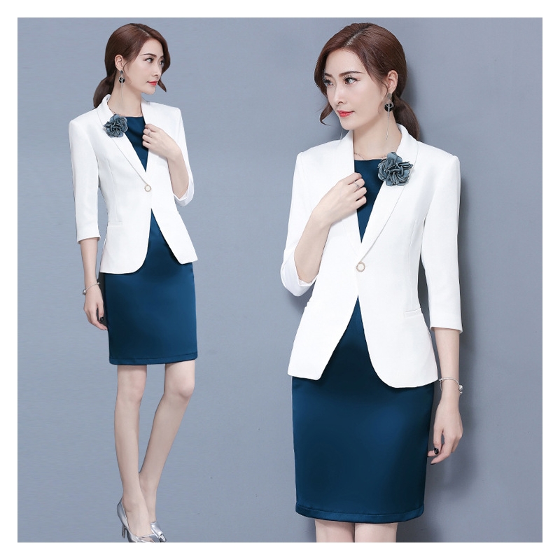 high quality women office work suits (blazer + skirt+vest+shirt +corsage) 4 colors design